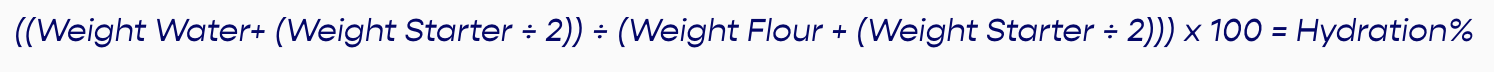 Sometimes your starter is not equal parts water to flour. Maybe its a dry starter at 80% to boost acidity or a wet starter at 120% to increase the activity of the yeast. Here the math becomes a lot more complicated - so I built a calculator to make it easy.